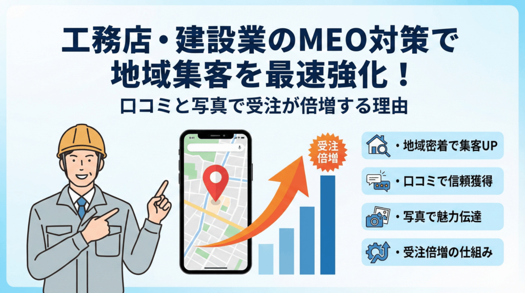 工務店や建設業MEO対策は、地域の実績と最新情報の発信が継続して積み上がるほど、検索結果での可視性と信頼が揃って強化されます。