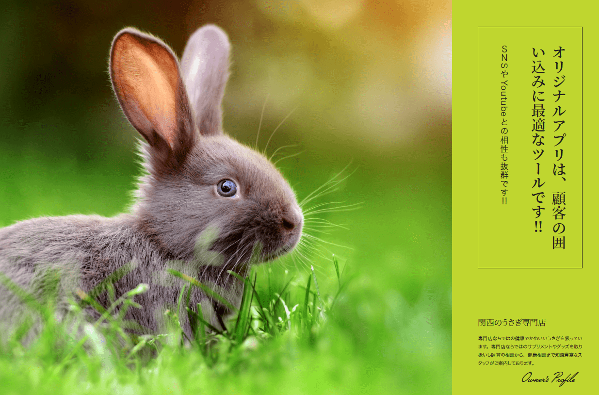 お客様の囲い込みで活用しようと考えていたので、来店されたお客様には必ず会員登録をご案内するようにしています。他のサービス業や販売店と違ってペットショップはその場ですぐに購入されるのではなく、どのうさぎがいいのか・支払いはどうするのか・飼育はどうしらいいのか、お客様が検討をされてから購入されるので来店後のオリジナルアプリでのフォローが重要になります。当店ではアプリからYoutubeでうさぎの紹介動画をお知らせしたり、セールなどはしていないのですが会員様限定のポイントアップセールを告知したり、うさぎの撮影会のイベント告知などをして一度ご来店いただいて検討をされているお客様に情報を共有することで、再来店のきっかけ作りにオリジナルアプリを活用しています。