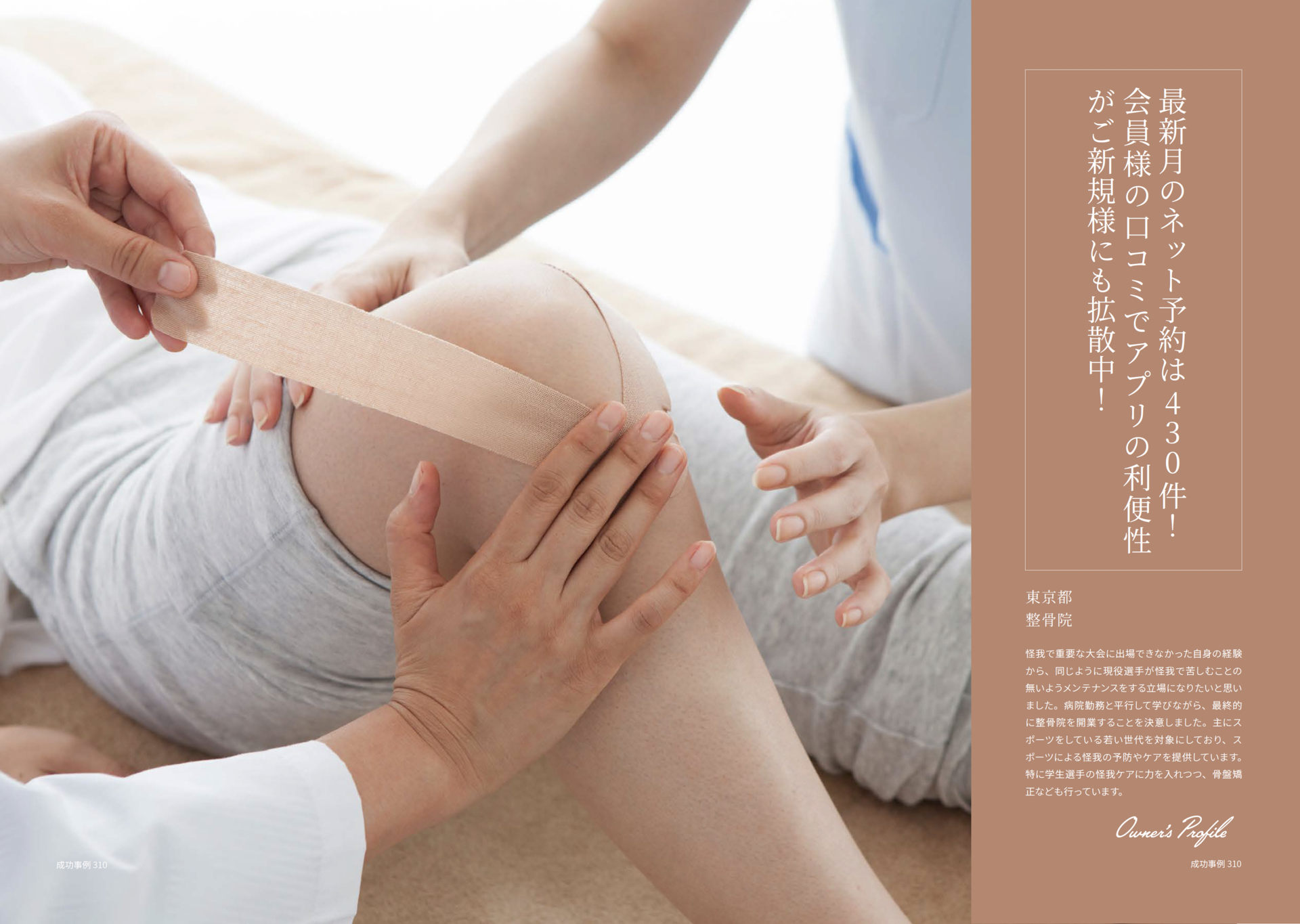 怪我で重要な大会に出場できなかった自身の経験から、同じように現役選手が怪我で苦しむことの無いようメンテナンスをする立場になりたいと思いました。病院勤務と平行して学びながら、最終的に整骨院を開業することを決意しました。主にスポーツをしている若い世代を対象にしており、スポーツによる怪我の予防やケアを提供しています。特に学生選手の怪我ケアに力を入れつつ、骨盤矯正なども行っています。