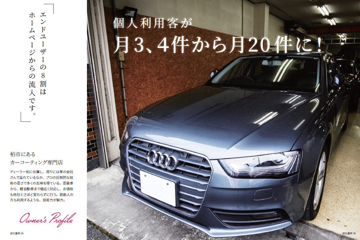 月3~4件だった個人のカーコーティング依頼がホームページを御社でリニューアルしてから20件くらいに増えました。