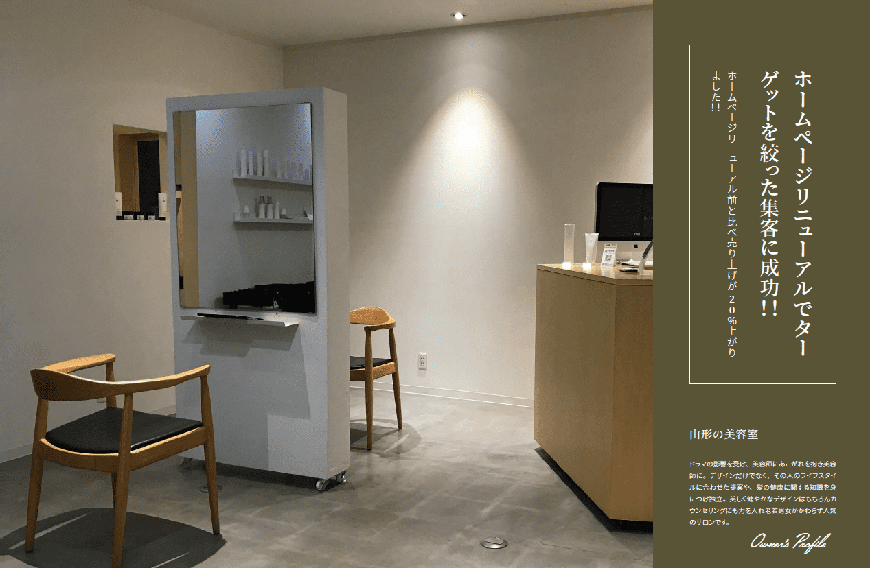 リニューアルして集客が出来るホームページに生まれ変わりました。ホームページのデザインも納得いくものを作成して頂けたので導入して良かったと思います。キーワード対策も自分達が欲しい施術内容や髪に対する悩みなどを簡単に更新して、情報発信が出来る事と、管理画面も見やすく検索キーワード対策も戦略的に出来るので助かっています。
