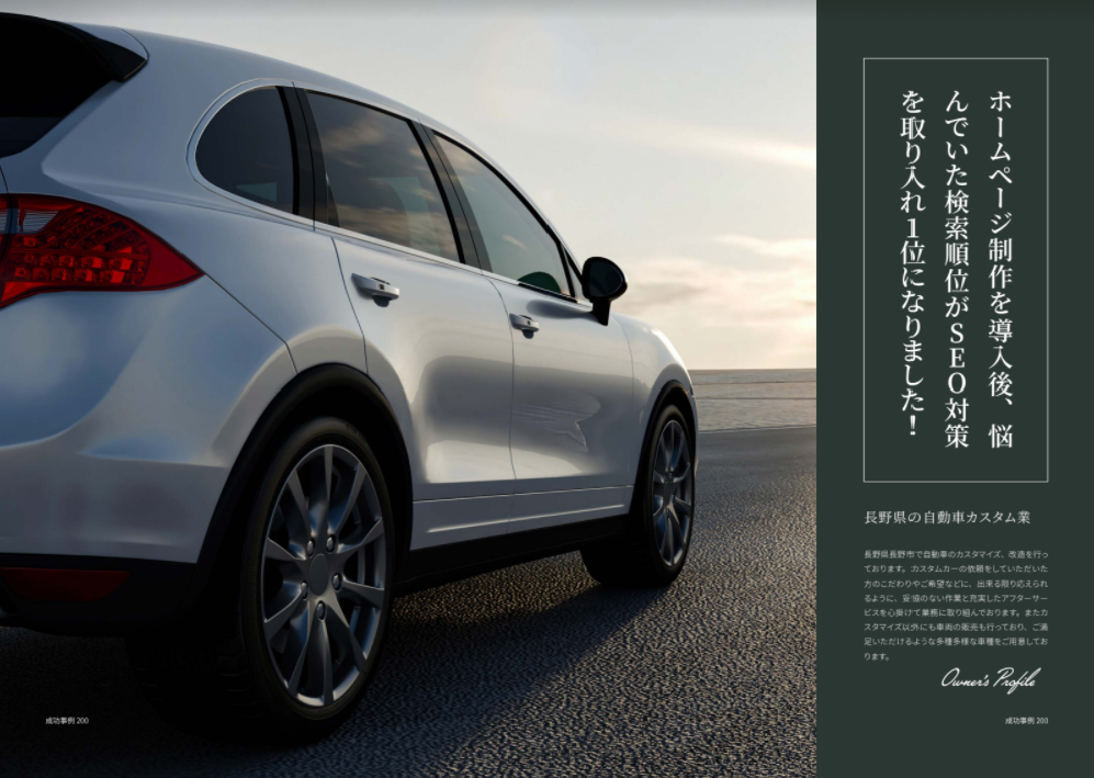 長野県の自動車カスタム業。長野県長野市で自動車のカスタマイズ、改造を行っております。カスタムカーの依頼をしていただいた方のこだわりやご希望などに、出来る限り応えられるように妥協のない作業と充実したアフターサービスを心掛けて業務に取り組んでおります。またカスタマイズ以外にも車両の販売も行っており、ご満足いただけるような多種多様な車種をご用意しております。