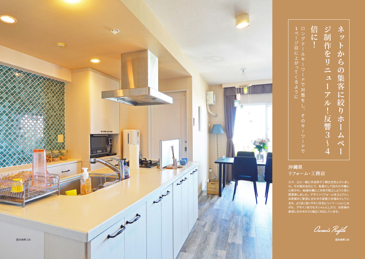 元々、父と一緒に奈良県で工務店を営んでいました。その後別会社にて、転勤として訪れた沖縄に心惹かれ、40歳を機にこの地で独立しようと思い開業致しました。デザインリフォームを主に行い、お客様のご要望に合わせた提案力を強みとしています。より良く使いやすい住宅にリノベーションしながら、デザイン面でもオシャレにしたり、お客様の要望に合わせたりと幅広く対応しています。