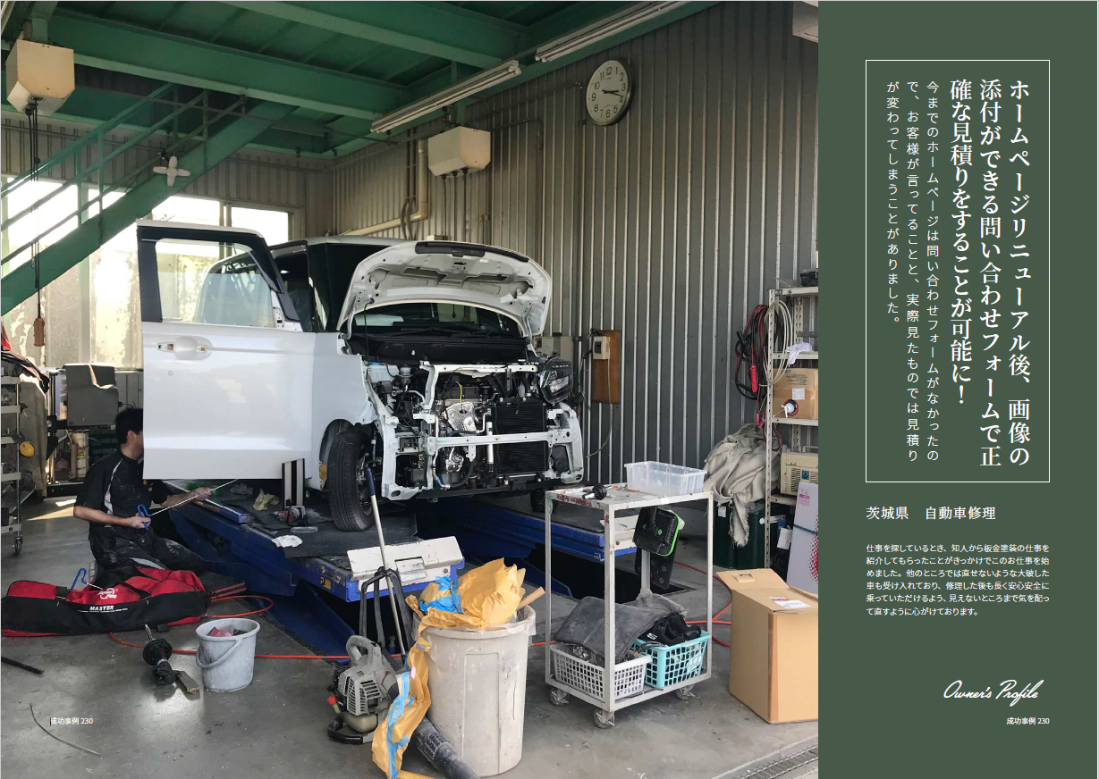 画像が添付されたお問い合わせがホームページのフォームから入るようになったので、正確な見積りが出せるようになったり、どの部分を修理すればいいのかを画像を見て判断できるようになりました。今までのホームページは問い合わせフォームがなかったので、お客様が言ってることと、実際見たものでは見積りが変わってしまうことがありました。それに比べ御社のホームページでは1度来店していただかなくても、お客様とやり取りを行うことができ、選ぶお客様からしても私たちからしてもいいなと感じています。閲覧数も増えてきていて、検索順位なども“板金塗装”などのキーワードで上がってきています。