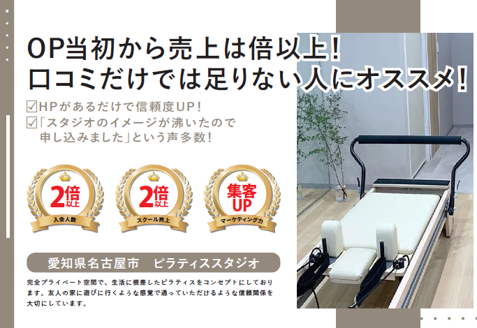 HP公開後3ヶ月で効果を実感し始めました。オーナー紹介として私自身の顔や経歴を掲載したり、スタジオの写真を掲載する事で事前情報が充実し、お客様に安心してお問い合わせいただけるのかと思います。HP があるだけで、個人スタジオの信用度が上がる事を実感しました。