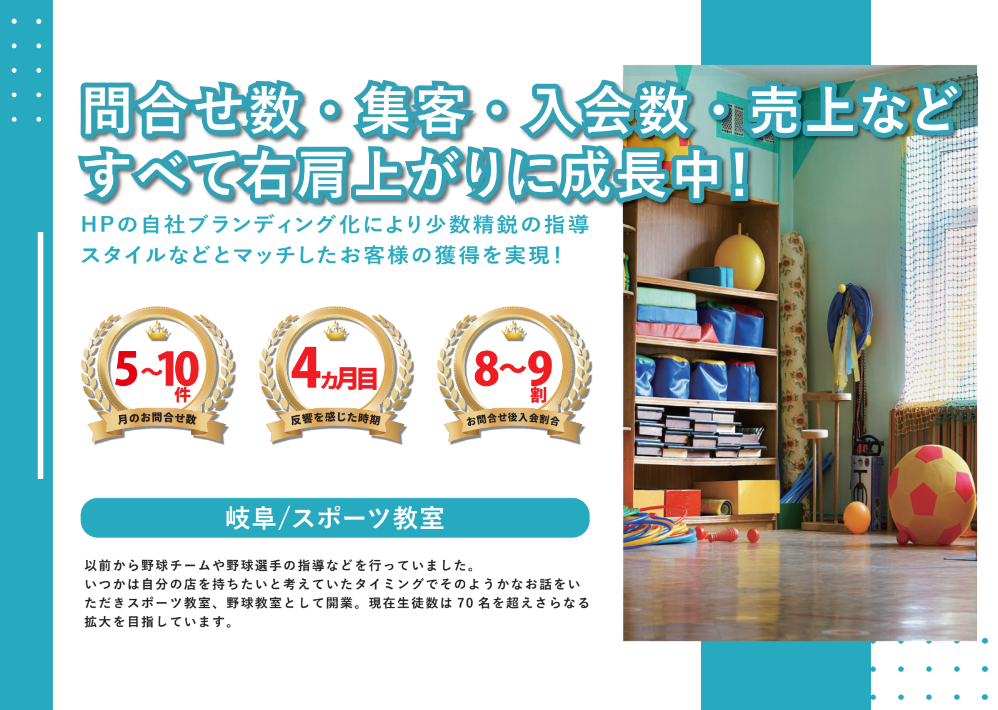 HPの自社ブランディング化により少数精鋭の指導スタイルなどとマッチしたお客様の獲得を実現!