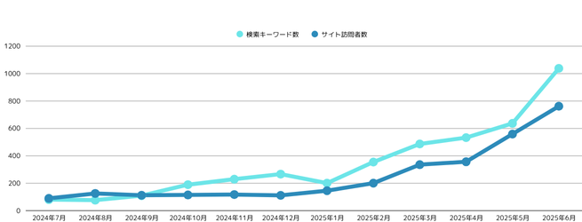 さらに、Webサイトのアクセス解析でも、月間訪問者数は1年前の約90人から762人に増加。検索キーワードも81から1,028と急増し、専門ワードや会話調の検索にも多数ヒットするようになり、認知と信頼の拡大を実感しています。