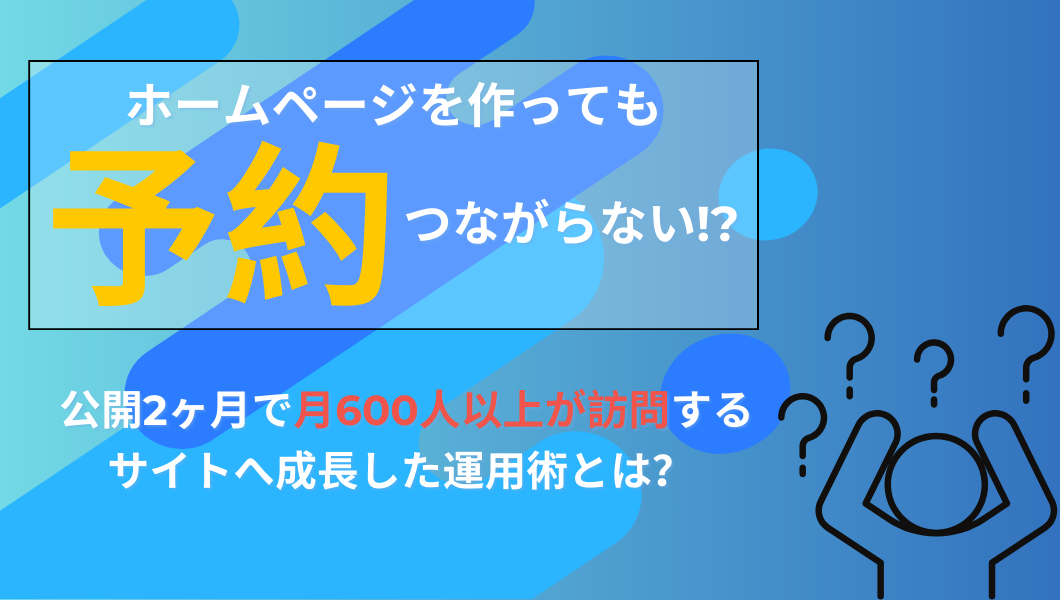 ホームページを公開してからは、「ホームページを見ました」と言って電話をいただくことが増えました。また、ホームページからそのまま予約につながるケースもあります。問い合わせの数としては、電話と合わせて月に10件から15件ほどです。実際にホームページを見て予約してくださるお客様がいるので、集客の窓口としてしっかり機能していると感じています。