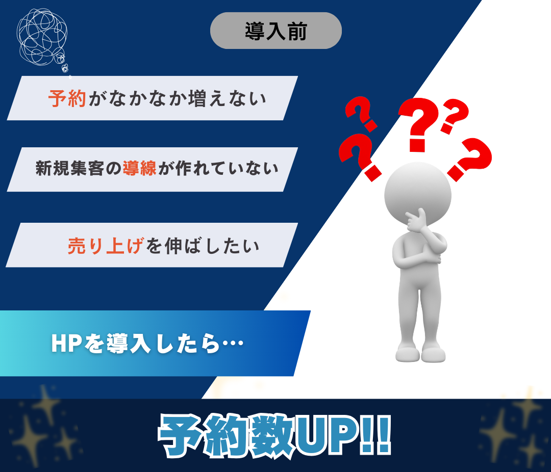 ホームページを導入してよかったと感じている点は大きく2つあります。1つ目は、サイトの見た目がとても綺麗になったことです。以前の簡易的なホームページと比べると、しっかりとしたサイトになり、お客様にも安心感を持ってもらえるようになったと感じています。2つ目は、お店の内容がお客様に伝わりやすくなったことです。実際にホームページを見て予約してくださる方も増えたので、情報をしっかり伝えるツールとして役立っています。