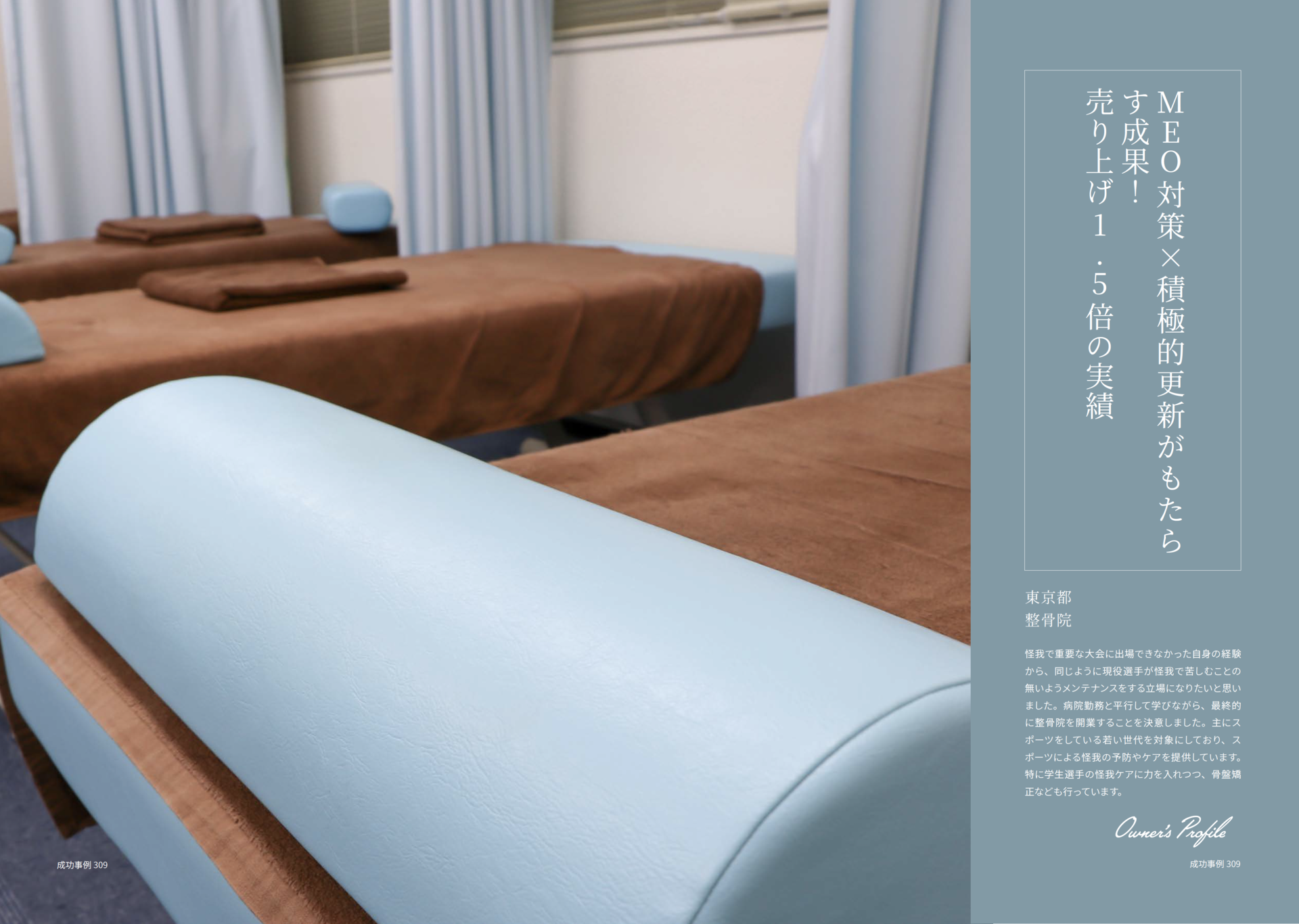 怪我で重要な大会に出場できなかった自身の経験から、同じように現役選手が怪我で苦しむことの無いようメンテナンスをする立場になりたいと思いました。病院勤務と平行して学びながら、最終的に整骨院を開業することを決意しました。主にスポーツをしている若い世代を対象にしており、スポーツによる怪我の予防やケアを提供しています。特に学生選手の怪我ケアに力を入れつつ、骨盤矯正なども行っています。