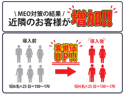 ホームページの運用を始めてから、以前より課題にしていた顧客のリピート率が増加しました。近隣にお住いのお客様を獲得できたことがおおきく影響したと感じています。また、売上全体では変化していませんが、客単価が上がり本来目指していた経営スタイルを実現できています。またMEO対策の効果で、マップの検索順位が上位に表示されるようになりました。