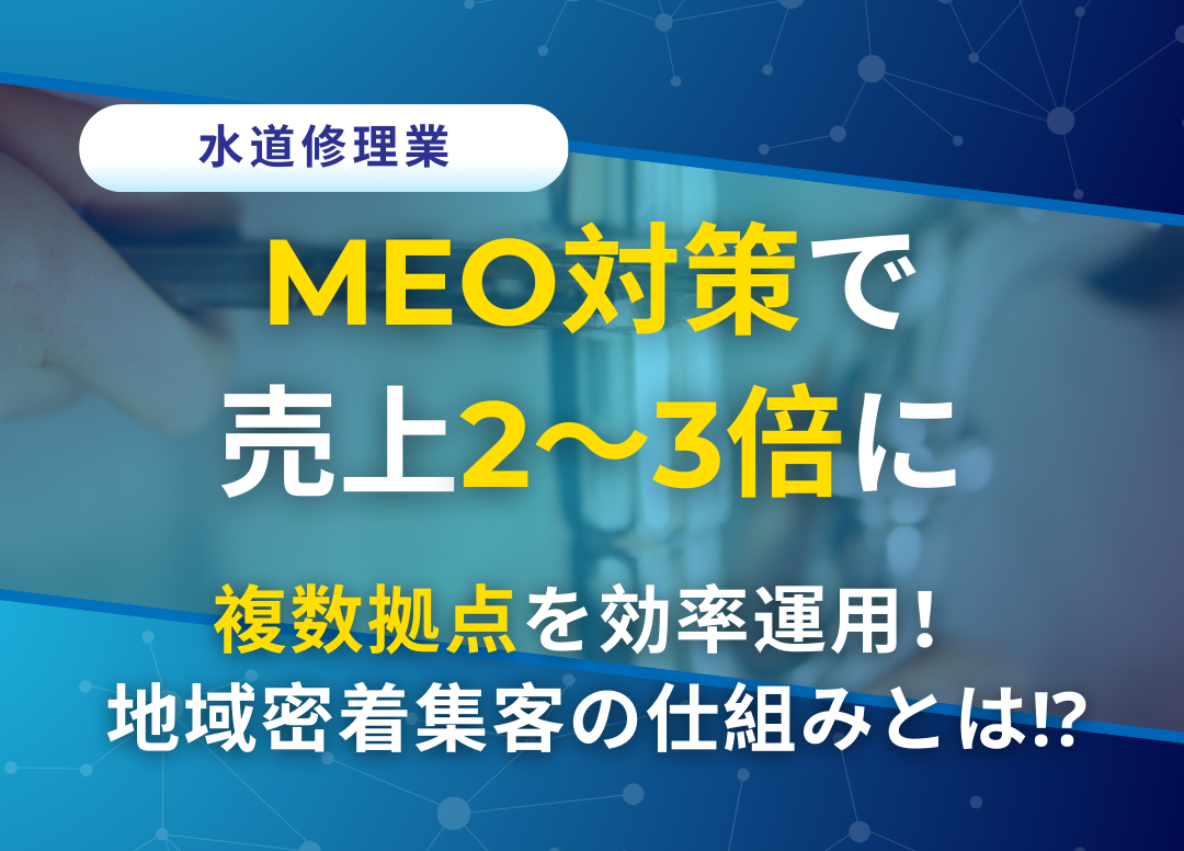 MEO対策で売上2〜3倍に。複数拠点を効率運用できる地域密着集客の仕組みとは!?~水道修理業の成功事例~