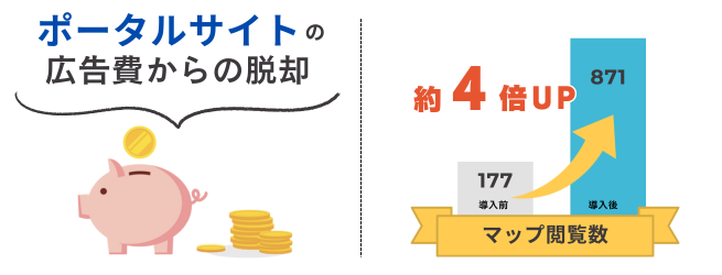 マップの閲覧数は月177件から871件へと約4倍、ウェブサイトのアクセス数も11件から33件へと大きく伸びており、しっかりと効果が数字に表れているのが嬉しいです。