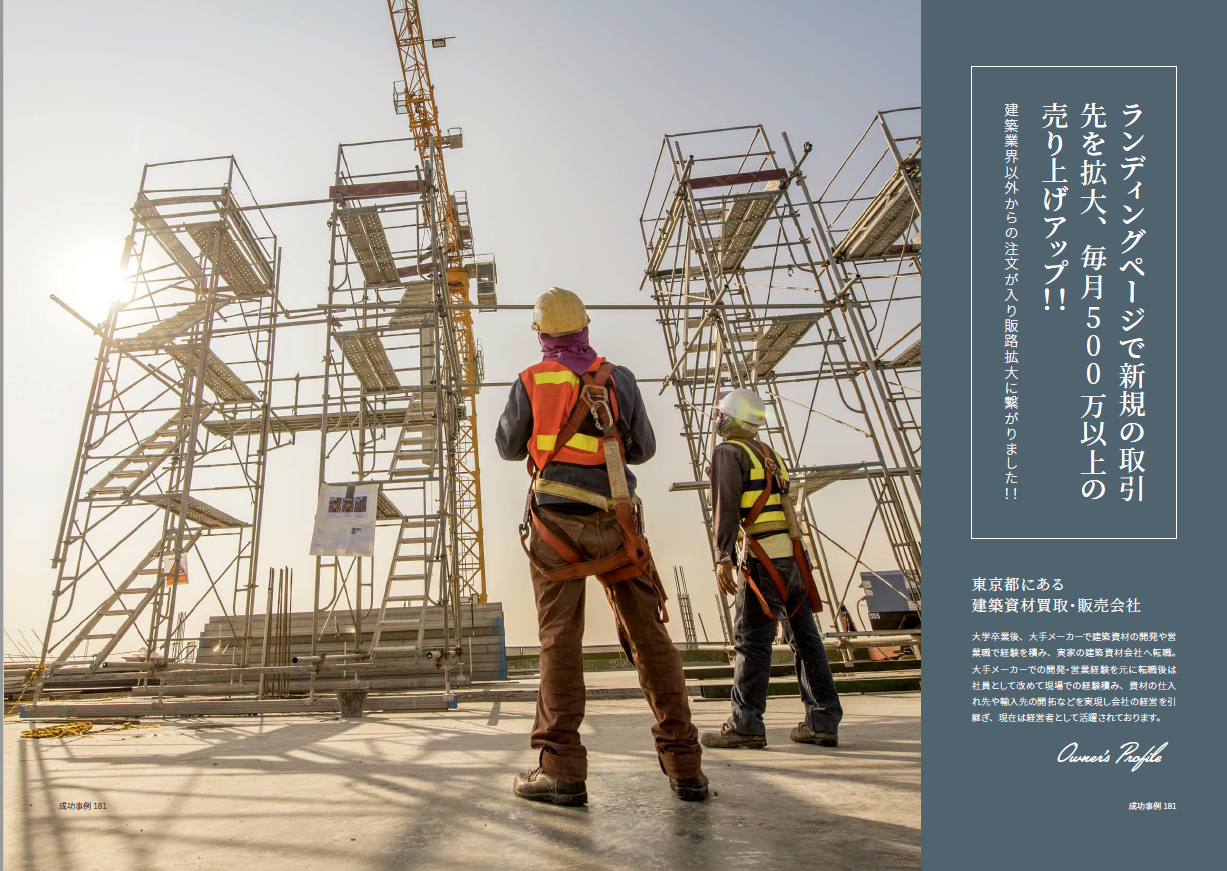 ランディングページで新規の建築資材取引先・卸先を拡大、毎月500万以上の売り上げアップ!!