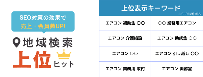 現在は月4〜5件の問い合わせがあり、そのうち2~3件はネット経由の問い合わせです。1件あたりの単価は60〜70万円、場合によっては200万円規模になることもあります。LP導入後のネット経由の売上は年間で約400万円ほど増加しました。サイト閲覧数も導入前は50〜70件ほどでしたが、今は150件安定してを超えるようになり、検索キーワード数も97から240へと倍以上に増えています。「エアコン補助金○○」や「業務用エアコン」で検索ヒットしたり、検索順位が上がっていることを実感しています。