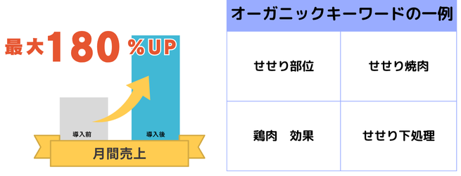 ホームページを導入してから、これまでほとんどいなかった遠方のお客様が明らかに増えました。「せせり部位」や「せせり焼肉」というキーワードで上位に表示されるようになり、実際に「せせりが美味しい」という口コミも増えており、その影響も大きいと感じています。売上も好調で、いい月では前年比180%アップ、平均でも120〜130%アップを維持しています。さらに、サイトの訪問者数も今年の3月以降は1,000人超えを継続しており、確実に成果を実感しています。