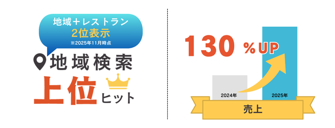 また、導入後は検索結果でも「地域名+レストラン」で上位に表示されるようになり、現在は2位に表示されるほどになりました。お店の認知度が大きく高まり、売上も前年比で120〜130%ほどアップ。手応えをしっかり感じています。