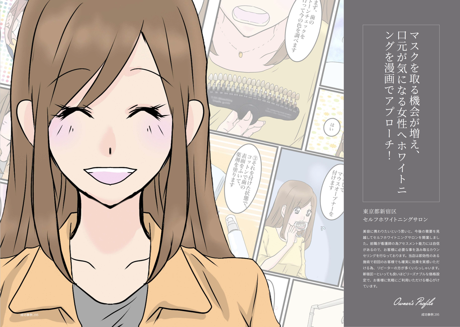 美容に携わりたいという思いと、今後の需要を見越してセルフホワイトニングサロンを開業しました。前職が看護師の為アセスメント能力には自信があるので、お客様に必要な事を汲み取るカウンセリングを行なっております。当店は即効性のある施術で初回のお客様でも確実に効果を実感いただける為、リピーターの方が多くいらっしゃいます。新宿区一といっても良いほどリーズナブルな価格設定で、お客様に気軽にご利用いただける様心がけています。