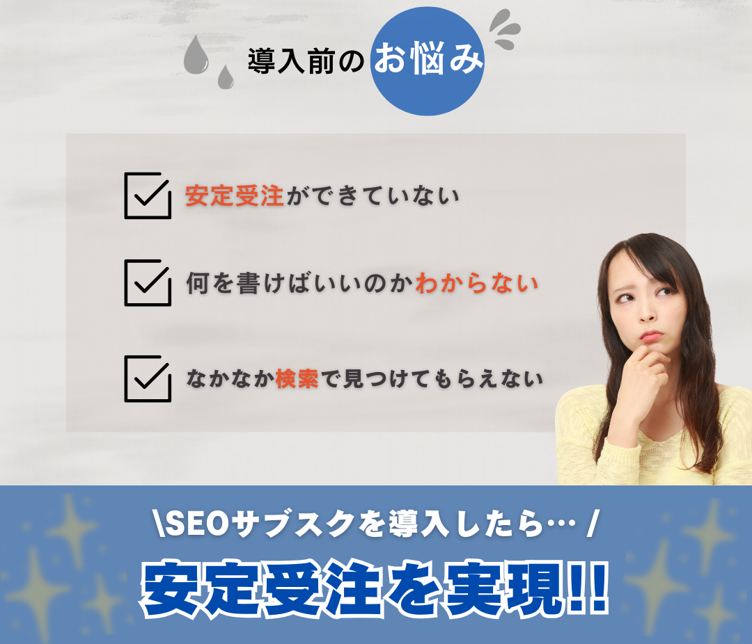 もともとホームページはありましたが、「集客寄りにしたい」という思いがありました。以前は色々な地域に行っていましたが、近隣の地域で戦うと決めてからは、地域でしっかり見つけてもらえる体制が必要だと感じていました。営業の方と話す中で「SEOの記事を増やしていかないと」という方向性になり、自分で更新するのは難しいと感じていたので、「それはお任せしようかな」とSEOサブスクを導入しました。